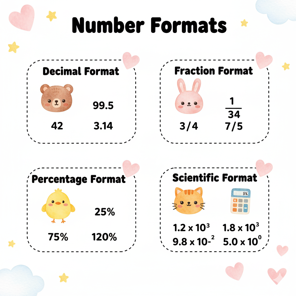 Integers (Z): All whole numbers and their negatives: Z = {… , −3, −2, −1, 0, 1, 2, 3, …}. Integers have no fractional or decimal part.
